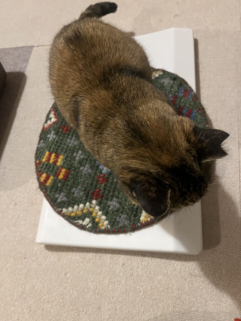 (マットトレーニングをしていて、マットを敷くと喜んで乗ってくれます♪)
