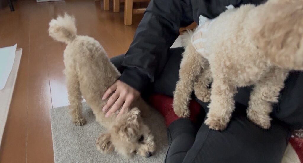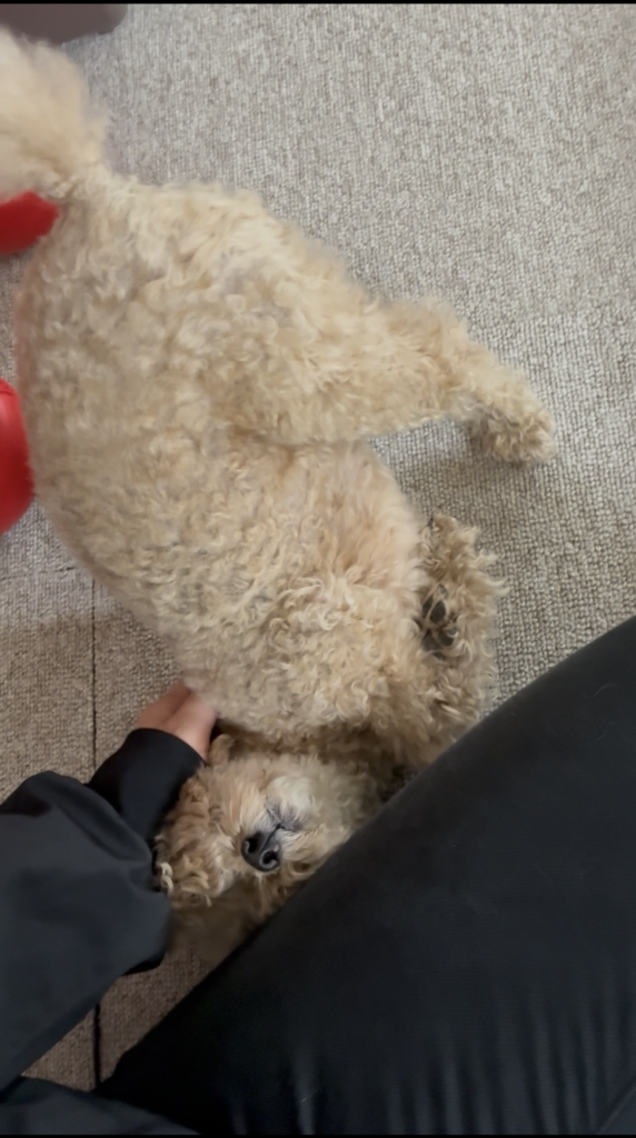 シェリーちゃんはなでなでがとっても大好きなようで、体をぐいっとねじって全力でなでなで受け入れ態勢を示してくれます🥰